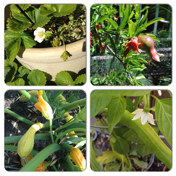 Every time I see a flower on a fruit tree or a garden vegetable, I get hungry. Maybe this is common knowledge, but I didn’t know until recently that where ever there is a flower on a plant that grows fruit, there will be a fruit! It’s like an awesome movie trailer of what’s to come. Or even better, the X on a pirate map of where the treasure is. Or even best, a beautiful flower that’s come to say, “I will soon be a tasty piece of free food for you to eat!”